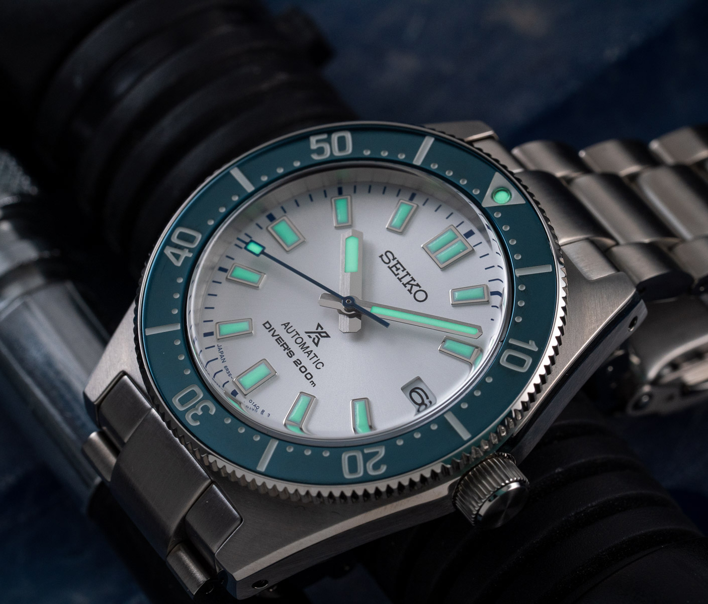 В своей коллекции к 140-летию Seiko решила использовать белый и синий в качестве соединительных цветов для своих часов Astron, Prospex, Presage и 5 Sports. Ранее у нас вышла статья по Astron GPS Solar SSH093J1. Циферблат представляет собой разбивающиеся волны, синие детали дизайна - штрих безоблачного неба, и в результате вы получаете очень классные часы. SPB213J1 остается очень близким к оригиналу 1965 года, хотя они выросли с 37,5 до 40,5 мм. И помимо расцветки 2021 года, технически, часы для дайверов также полностью обновлены и готовы практически ко всему, что связано с подводным миром. Но внешний вид также делает их универсальным компаньоном.