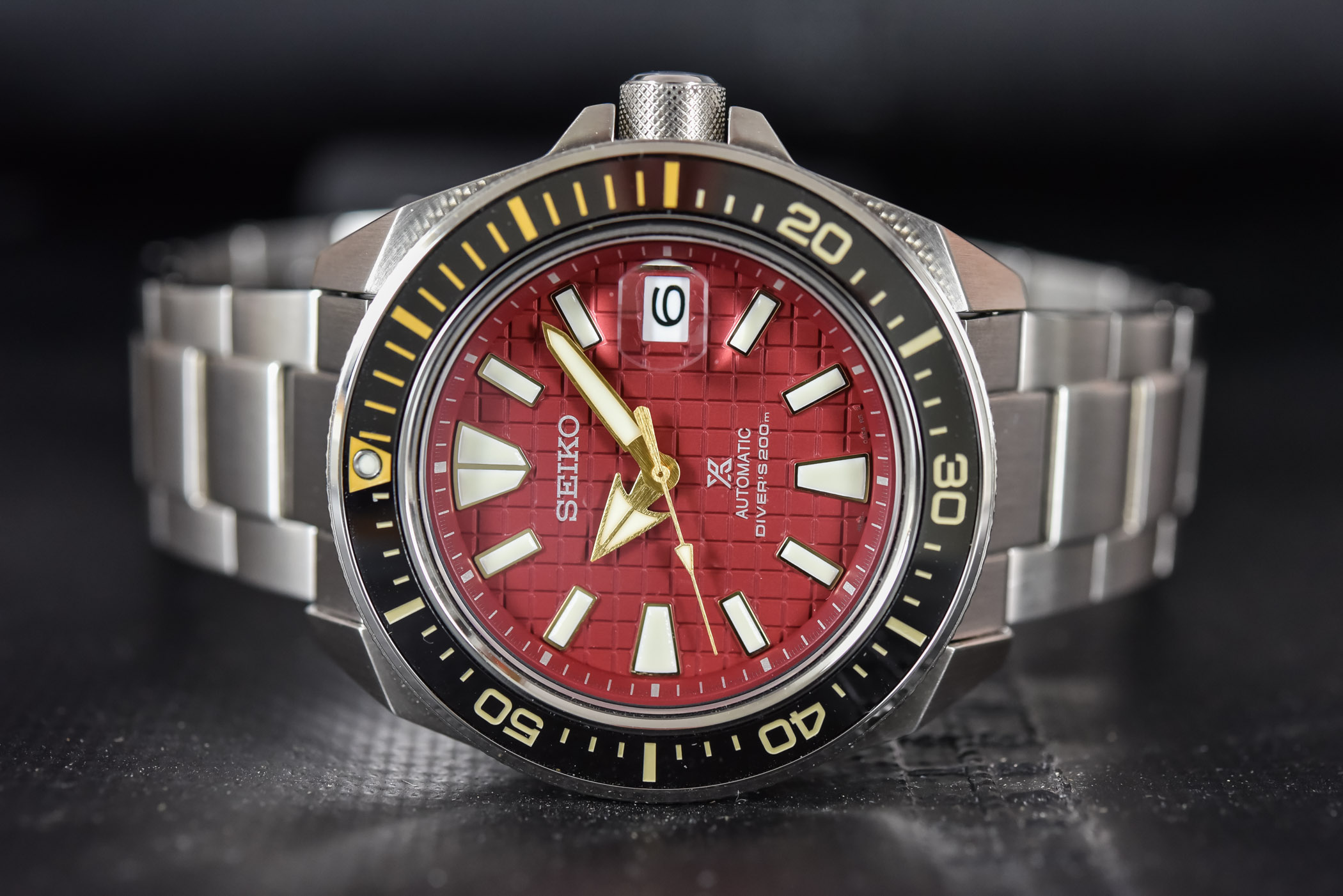 Если этот цвет не для вас, давайте поговорим о более реалистичных вещах, и речь идет о часах. Эта новая ограниченная серия Shu-Iro SRPH61K1 основана на текущих моделях King Samurai. Эти часы, выпущенные в середине 2020 года, представляют собой модернизацию одной из самых знаковых часов для дайвинга, производимых Seiko, - Prospex Samurai. Впервые представленный миру в 2004 году, Самурай - полная противоположность своей сестре - Черепахе. В то время как все говорят о круглых формах и гладких поверхностях, Samurai - это часы с современным дизайном, без винтажного вдохновения. Острый, мощный, почти агрессивный, этот дизайн находил свою аудиторию, пока бренд не удалил его из своей коллекции в 2008 году, а затем вернулся в 2017 году.